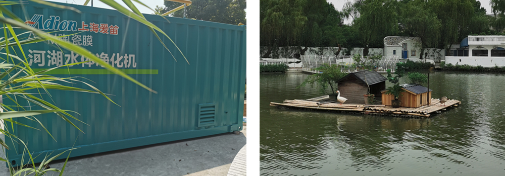 上海愛笛環境公司結合該景觀湖水質的具體情況,制訂了針對性的水質提升解決方案,采用愛笛的“A-M 陶瓷膜河湖水體凈化機+復合生態浮島”工藝,同時適當啟動原有的“人工瀑布+曝氣增氧機”,具有投資省、占地小、對周邊環境影響小、施工維護簡便、運行成本低、無二次污染等特點。通過修復水體生態,激活水體的自凈能力,并美化水體景觀,取得良好的治理效果。