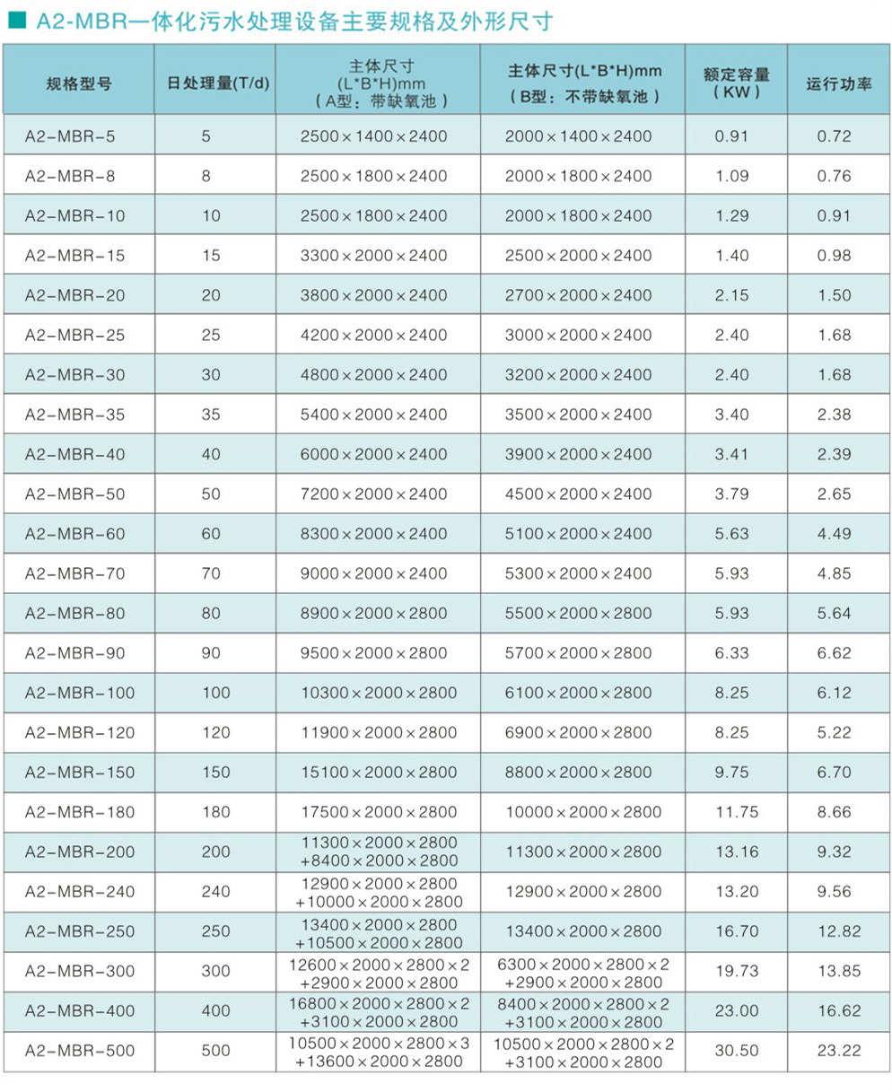A2-MBR一體化污水處理設備<BR>(高標排放或回用,5-1000T)