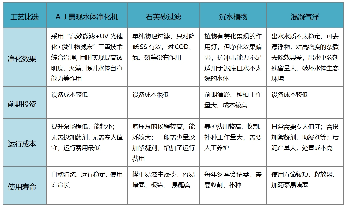 愛笛A-J景觀水體凈化機(jī)與其他景觀水凈化工藝的比選