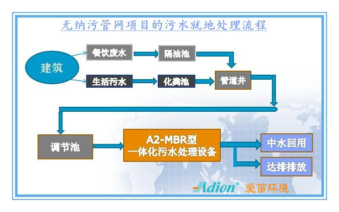 工藝流程本公司的A2-MBR型一體化污水處理,出水水質好、占地小、安裝便捷、運行維護簡便等特點,與此類項目的需求非常吻合,已得以廣泛應用。