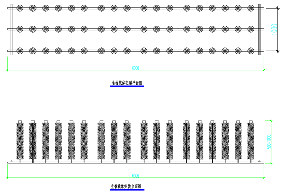 本項目擬結合河道的寬度和深度等情況,配置仿生人工水草生物載體:型號ADWZ-66m2/組,高度按水深情況配置。在河道的進口處適當加大布放密度,并設置浮體式攔污筒,攔截并削減外河污染的輸入。
