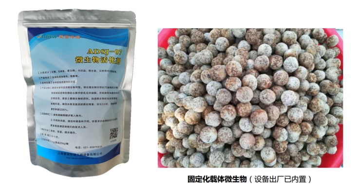 設于A-H河湖水體凈化機中的強化裝置,是一種強化激活并構建河湖水體中的微生物生態系統的專用裝置。在河湖水體中采集土著微生物菌體,同時根據目標污染物指標適量接種對應的高效微生物菌種,預先包埋在固定化載體內,后期緩釋出來后進行增量擴培。將高效菌種和載體投放到本裝置中的生物強化槽內,并將河水引入其中進行強化培養。向槽內投加本公司專用的ADSJ-07型微生物活化劑,該活化劑中含有多種生物營養和生物酶,其中的酶蛋白具有催化生物化學反應加速進行的作用,酶的輔基中的金屬離子又是激活劑,通過一整套生物工程技術對高效的微生物菌進行擴培,同時將河湖水體中的土著微生物誘導、改良、培育成適合當地河道環境的高活性的優勢生物菌群,再通過管路送回到自然水體中。經過多次增量擴培、循環強化后,就在河湖水體中就構建起了高效微生物生態體系,使水體具有較強的自凈能力,從而實現對水體污染降解原位修復。