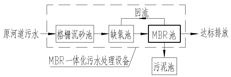 ● 水量較小時(shí)采用一體化截流污水處理設(shè)備;● 水量較大時(shí)采用土建池加膜系統(tǒng)的形式;